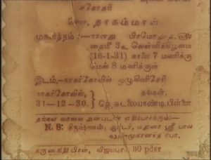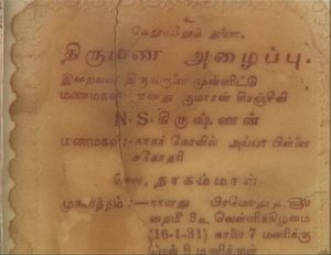 கலைவாணர் கிருஷ்ணன்பிள்ளை -நாகம்மாள் தம்பதினர் கல்யாண பத்திரிக்கை