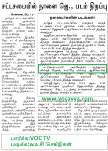 சட்டசபையில் மட்டுமல்ல நம் அய்யா வஉசி அவர்களின் புகழ் மட்டும் ஏனோ மறைக்கபடுகிறது.அது நம் இனத்தில் ஒற்றுமை இல்லாததால் தான். அனைத்து தலைவர்களுக்கும் அதிகபடியான சிலை உள்ளது. அனைத்து தலைவர்களின் பிறந்த நாள் விழாவும் அரசு விழாவாக கொண்டாடபடுகிறது.