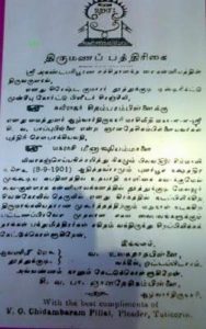 என் இனமான வெள்ளாள சொந்தங்களே அனைவருக்கும் எங்களின் இனிய ஆங்கில புத்தாண்டு தின நல் வாழ்த்துக்கள் செக்கிழுத்த செம்மல் கப்பலோட்டிய தமிழன் தென்னாட்டு திலகர் இரட்டை ஆயுள் தண்டனை பெற்ற ஒரே தியாகி வள்ளிநாயகம் உலகநாதன் சிதம்பரம்பிள்ளை அவர்களின் திருமண அழைப்பிதழ்