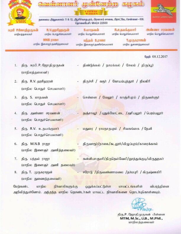 வெள்ளாளர் முன்னேற்ற கழக அறிவிப்பு